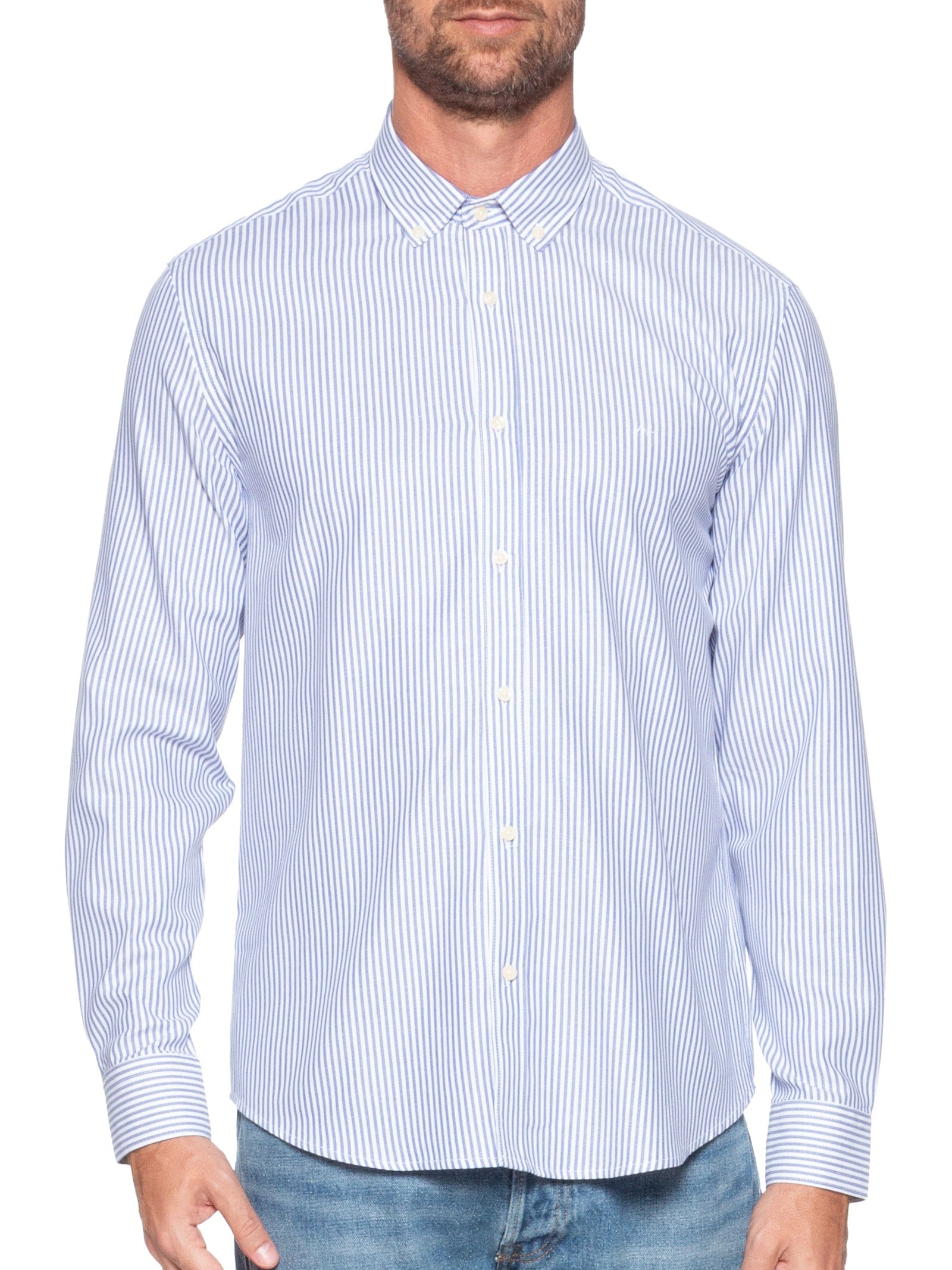 Camisa Masculina Button Down Regular Fit Listra Clássica - Azul