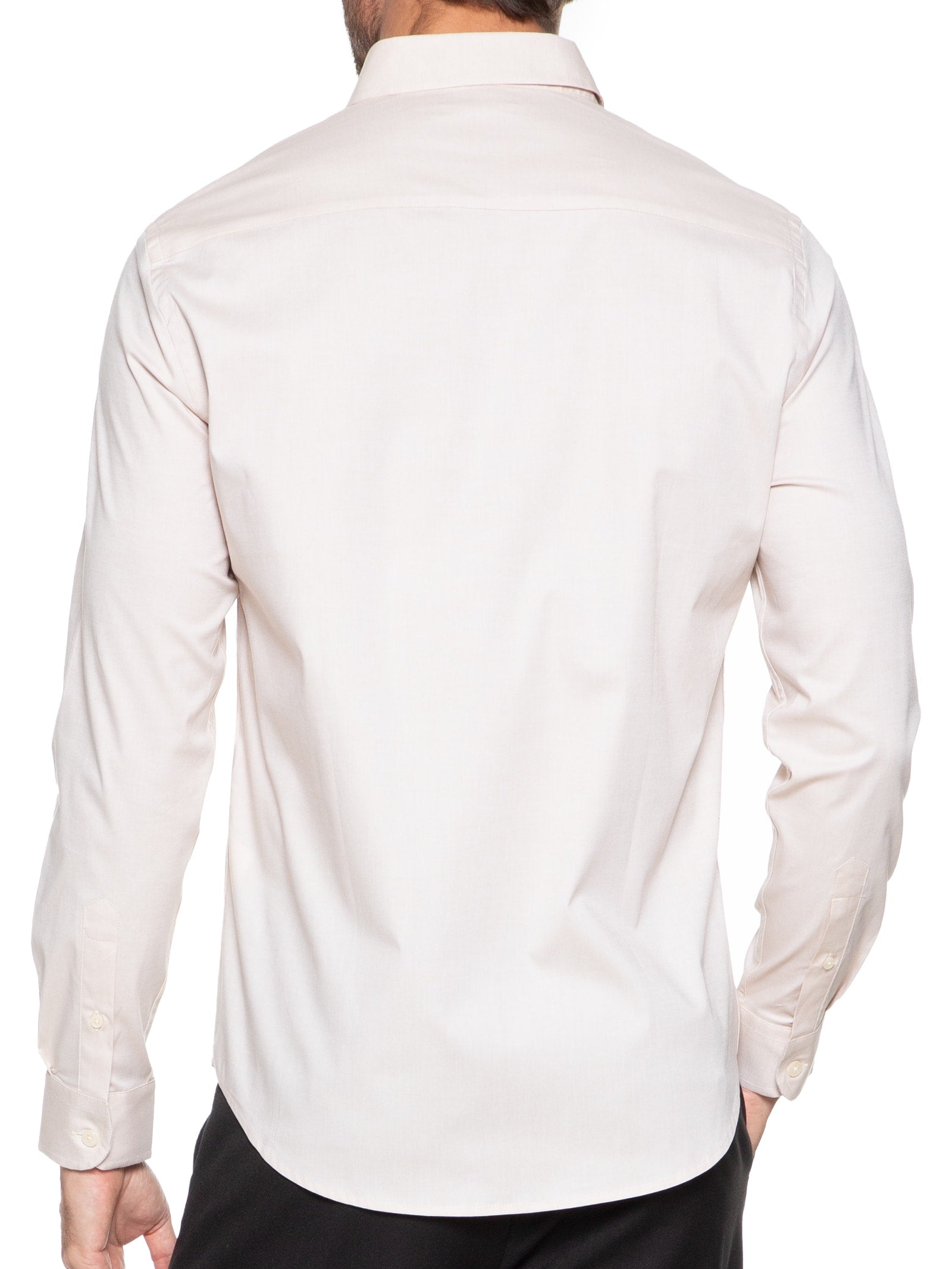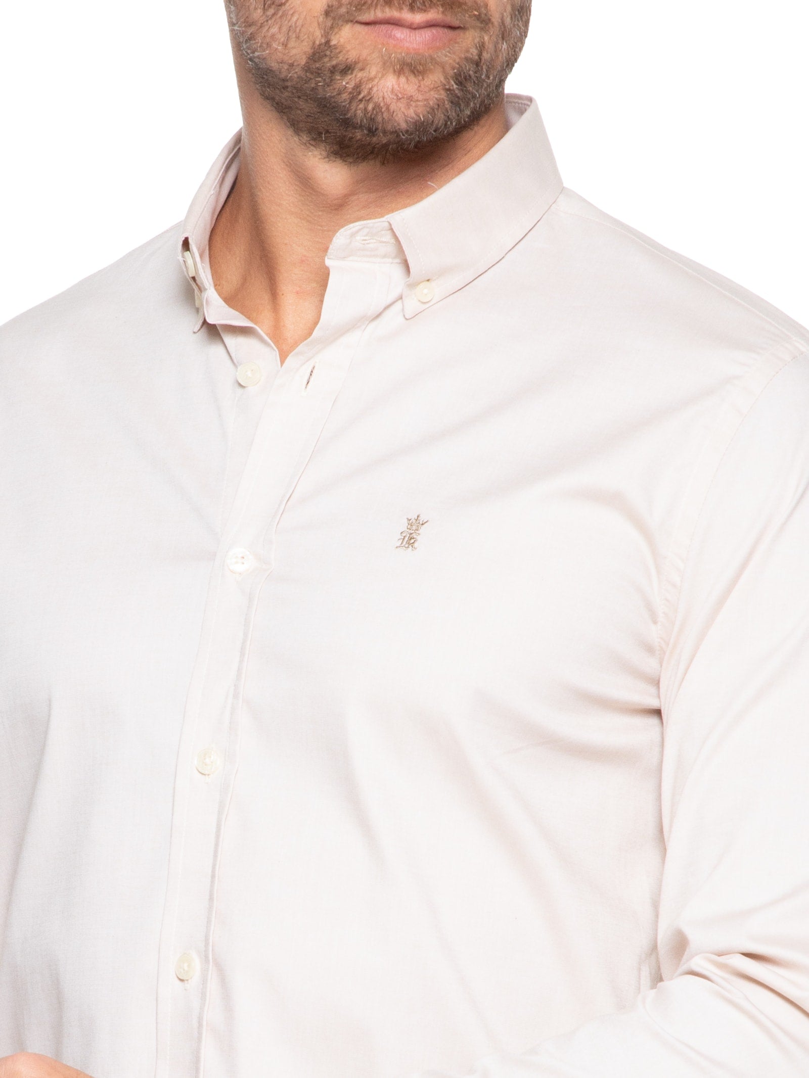 Camisa Masculina Slim Fit Button Down Em Oxford Com Elastano - Bege
