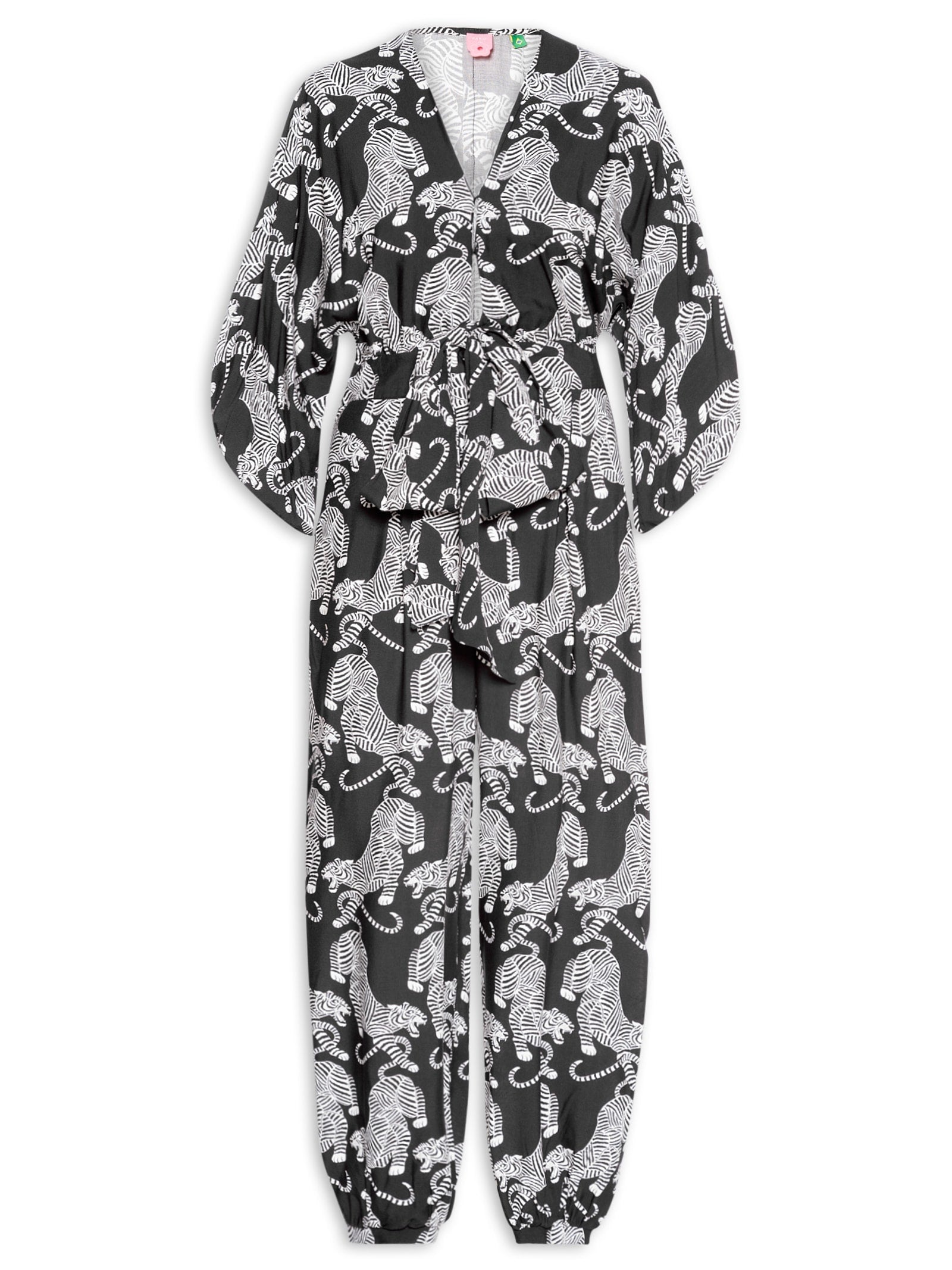 Macacão Feminino Com Ombreiras E Amarração - Preto