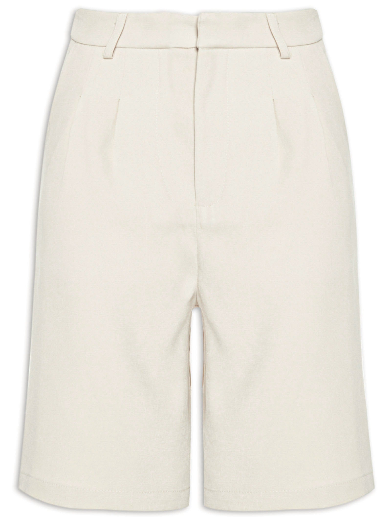 Bermuda Feminina Alfaiataria Barra Italiana - Bege