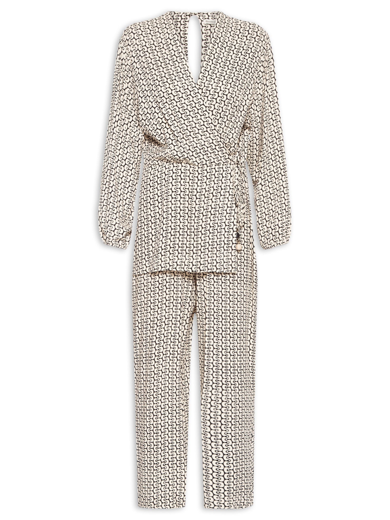 Macacão Feminino Boxer Crepe Estampa Ipanema - Preto