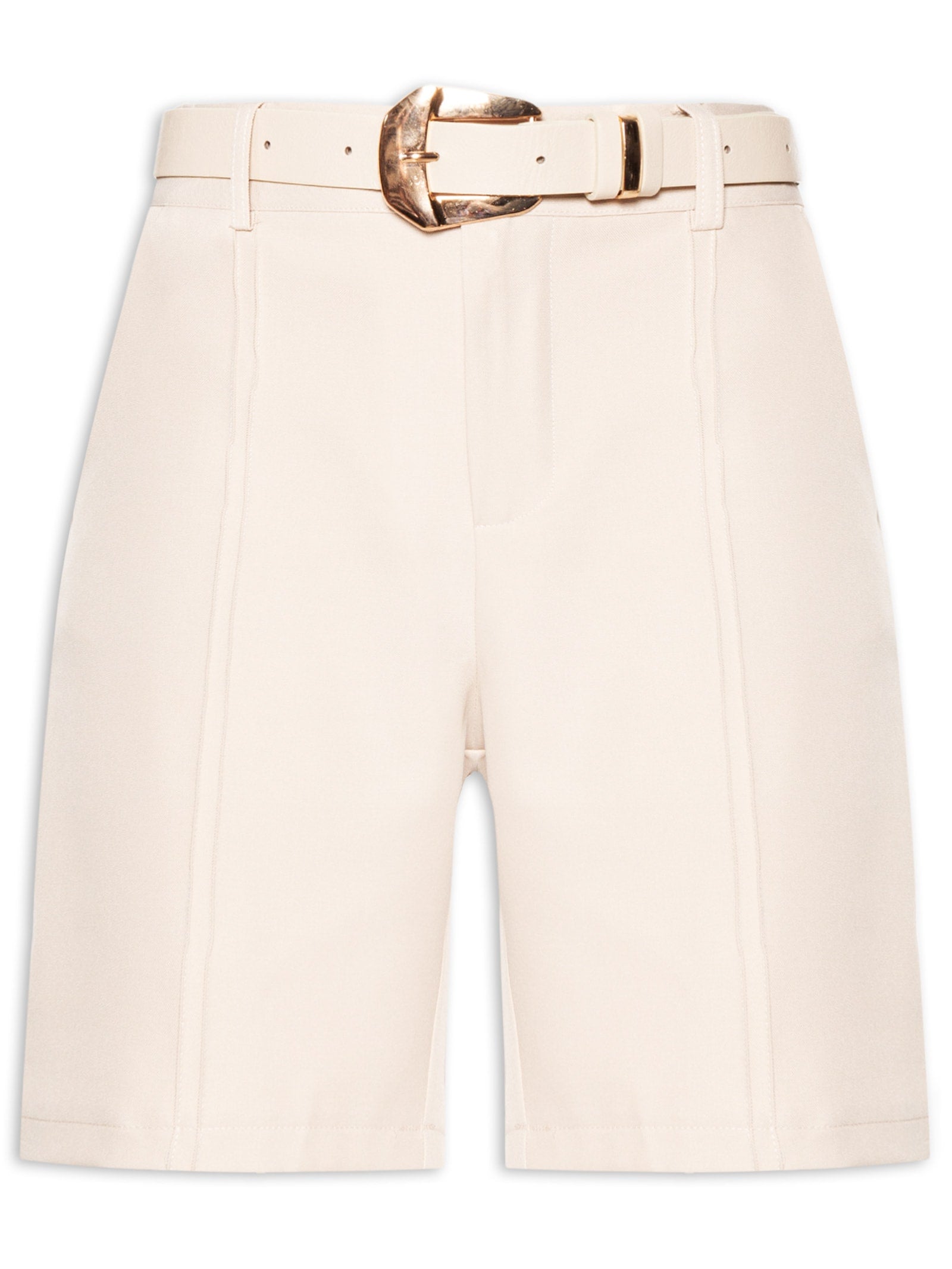 Bermuda Feminina Nervuras com Cinto - Bege