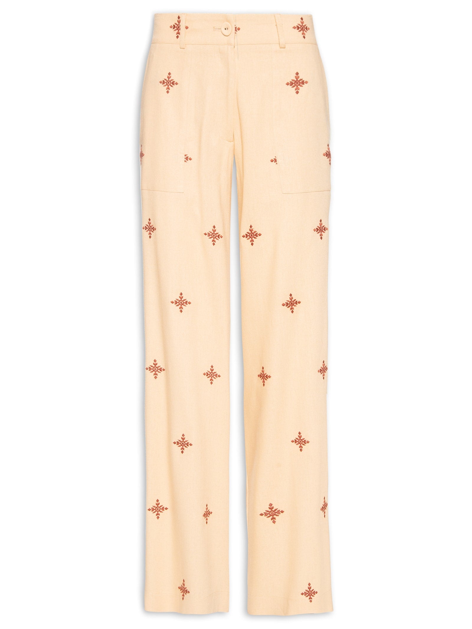 • Calça Feminina Sarja Boca Reta Bege Biscoito - Bege