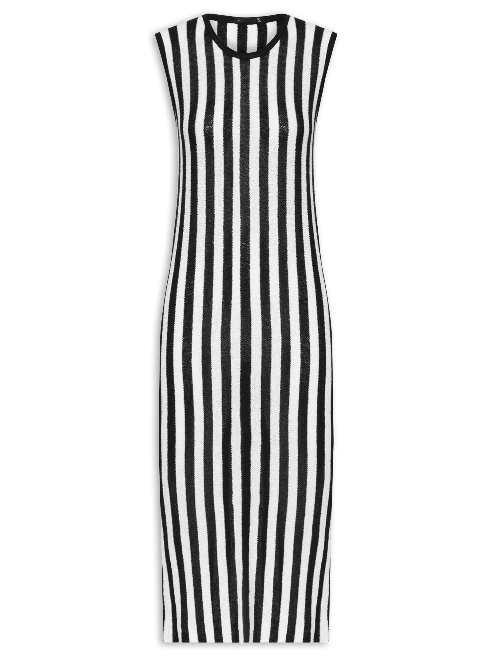 Saída de Praia Midi Listrado Em Tricot - Bege