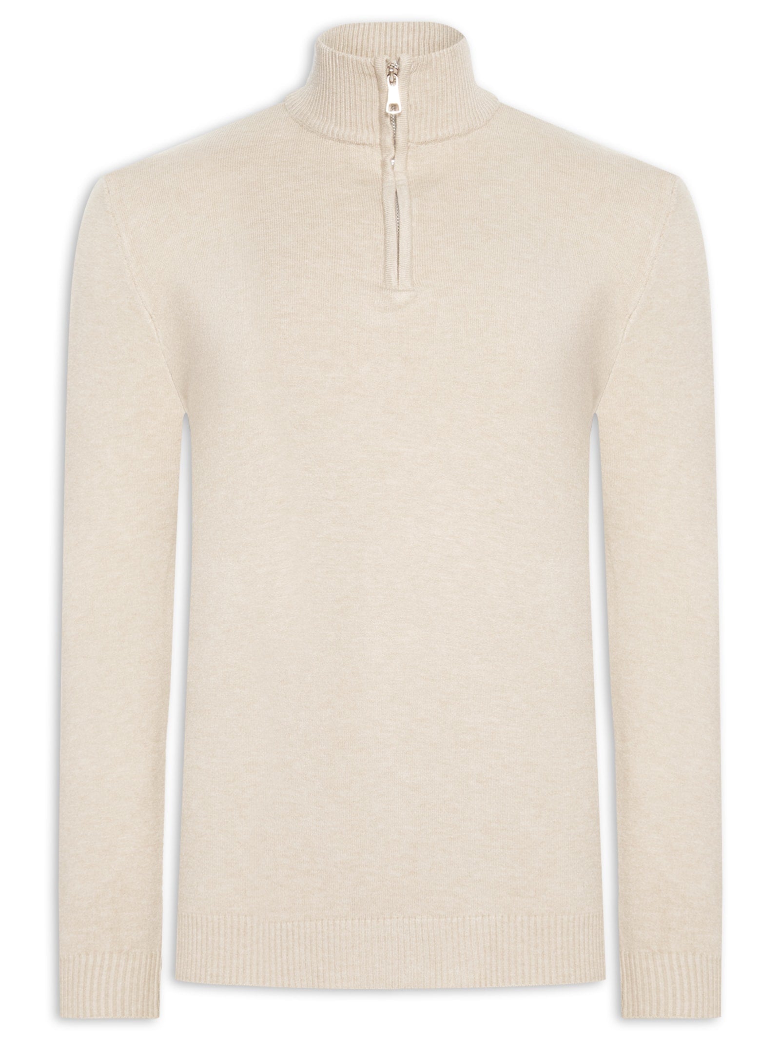 Suéter Masculino Gola Alta Meio Zíper - Bege