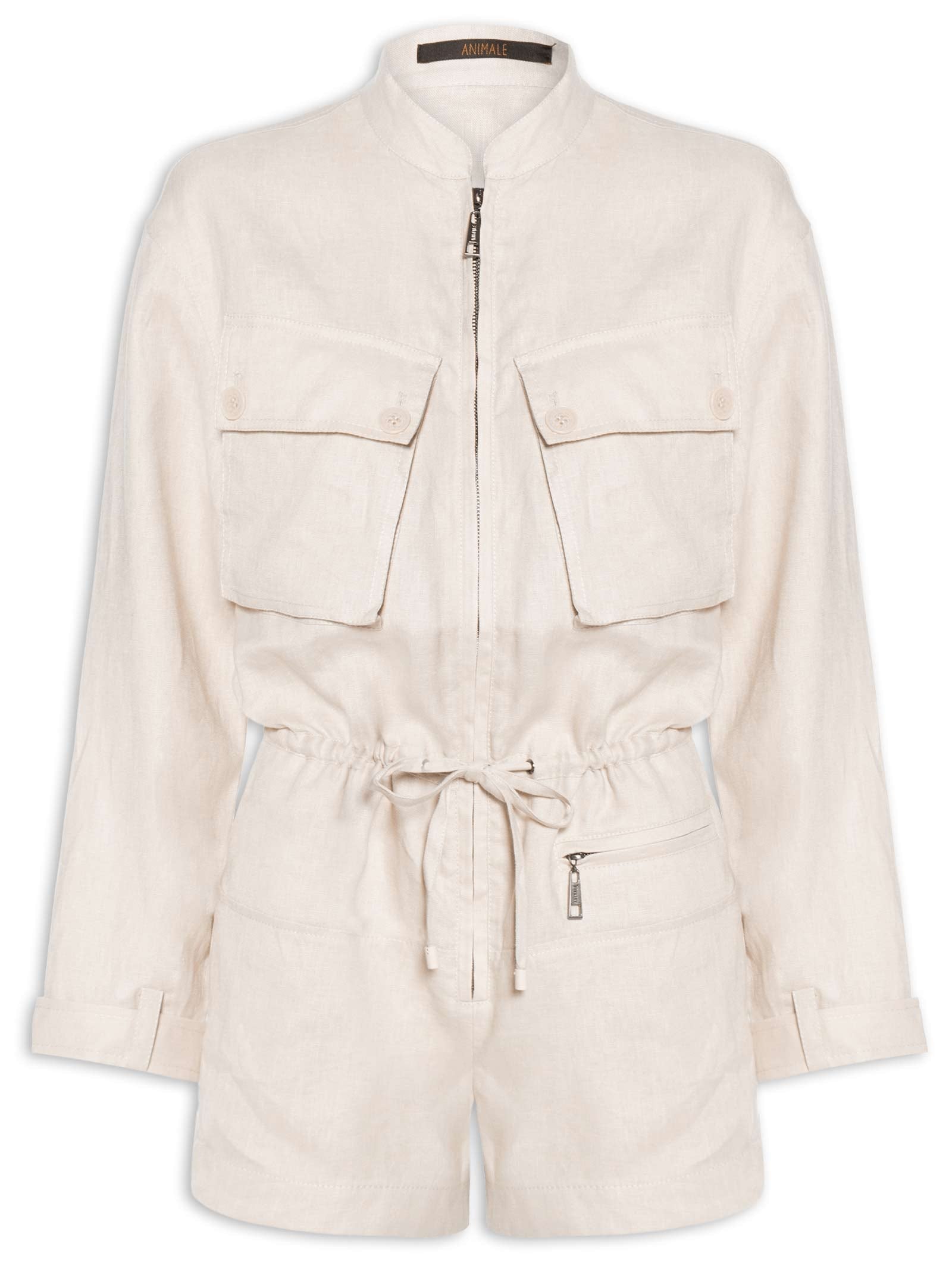 Macacão Feminino Manga Longa De Tricot Com Estampa Geométrica - Bege
