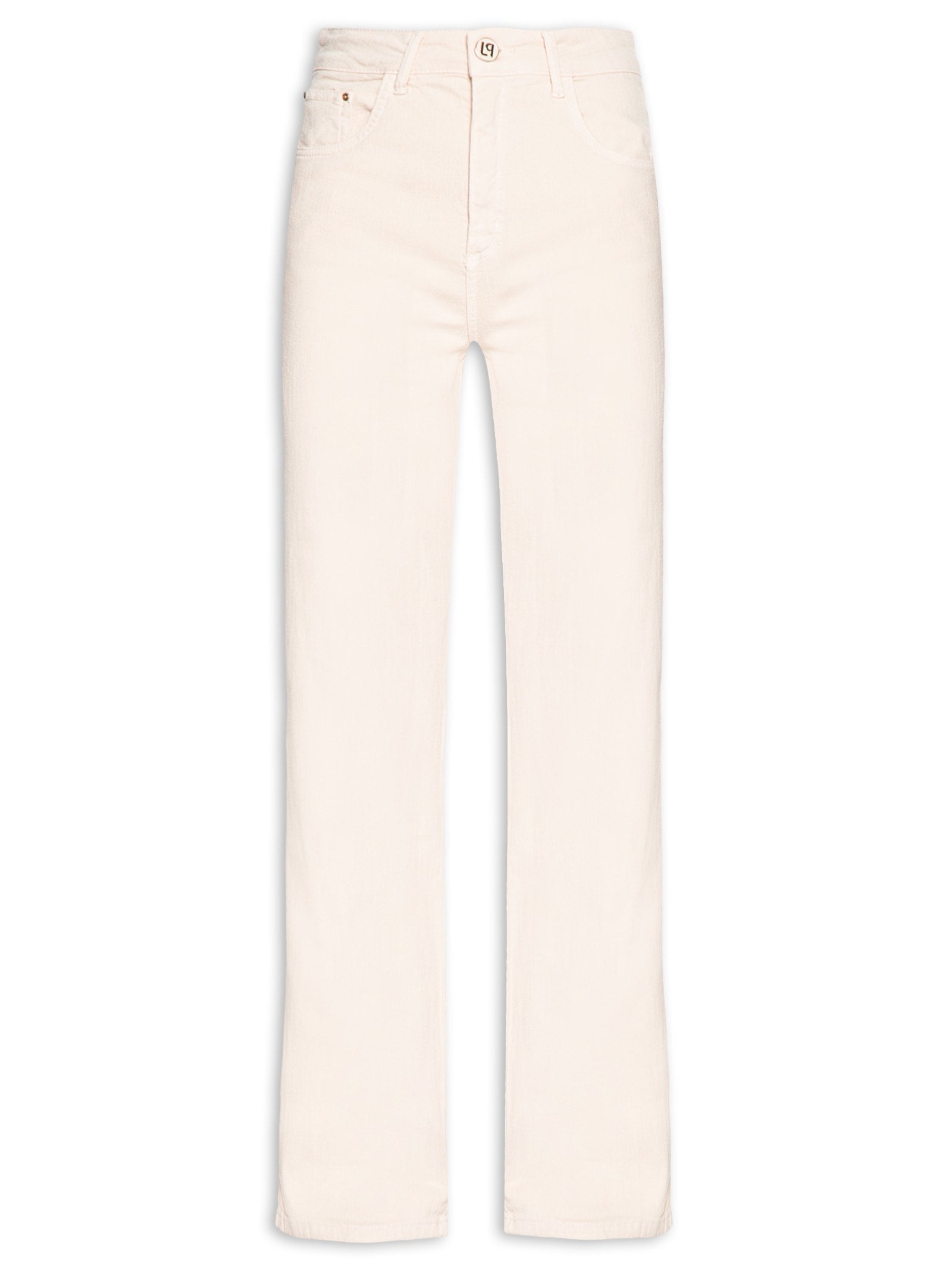 Calça Feminina Sarja Boca Reta Bege Biscoito - Bege