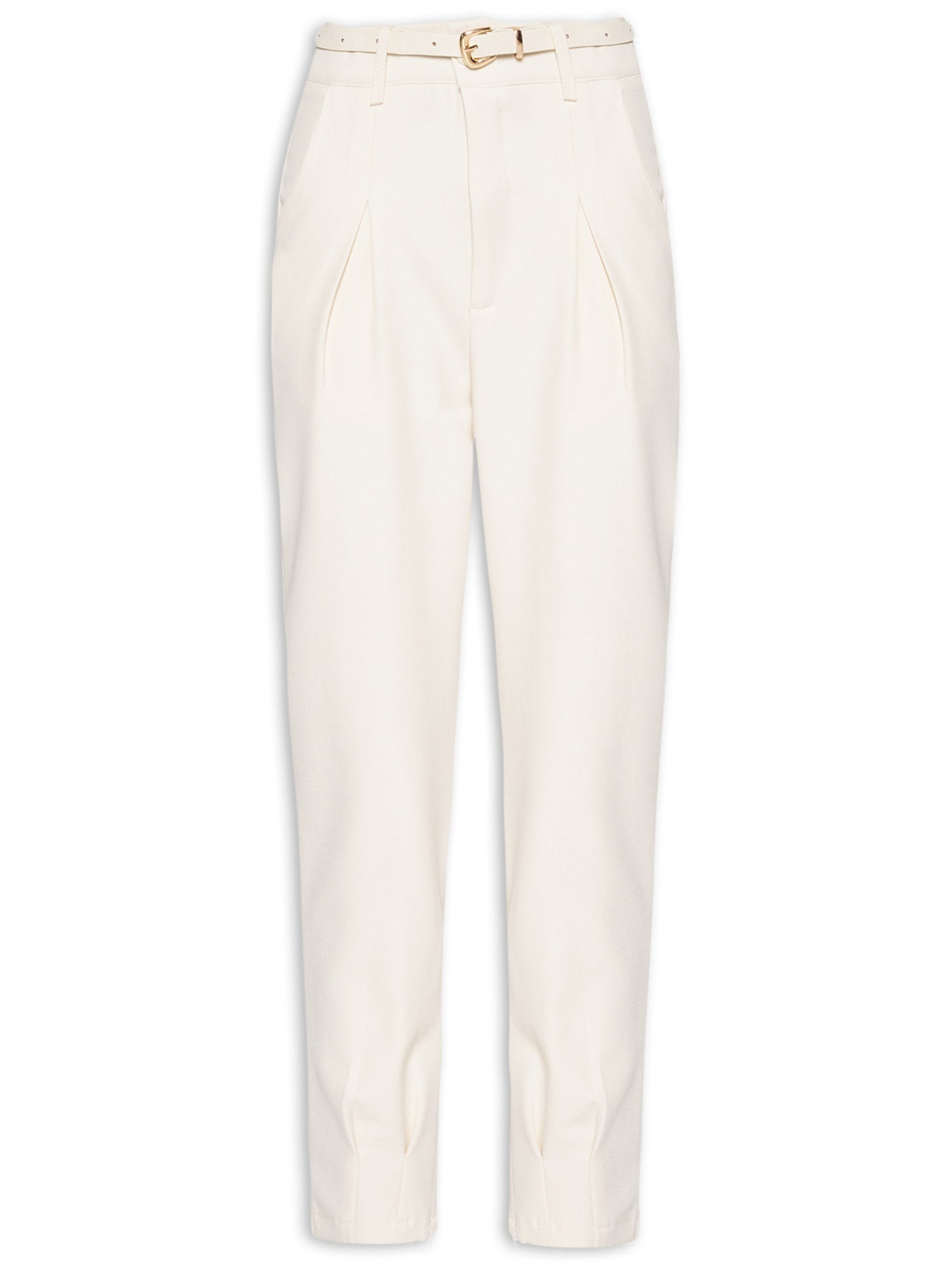 Calça Feminina Reta Pregueada com Cinto - Cinza