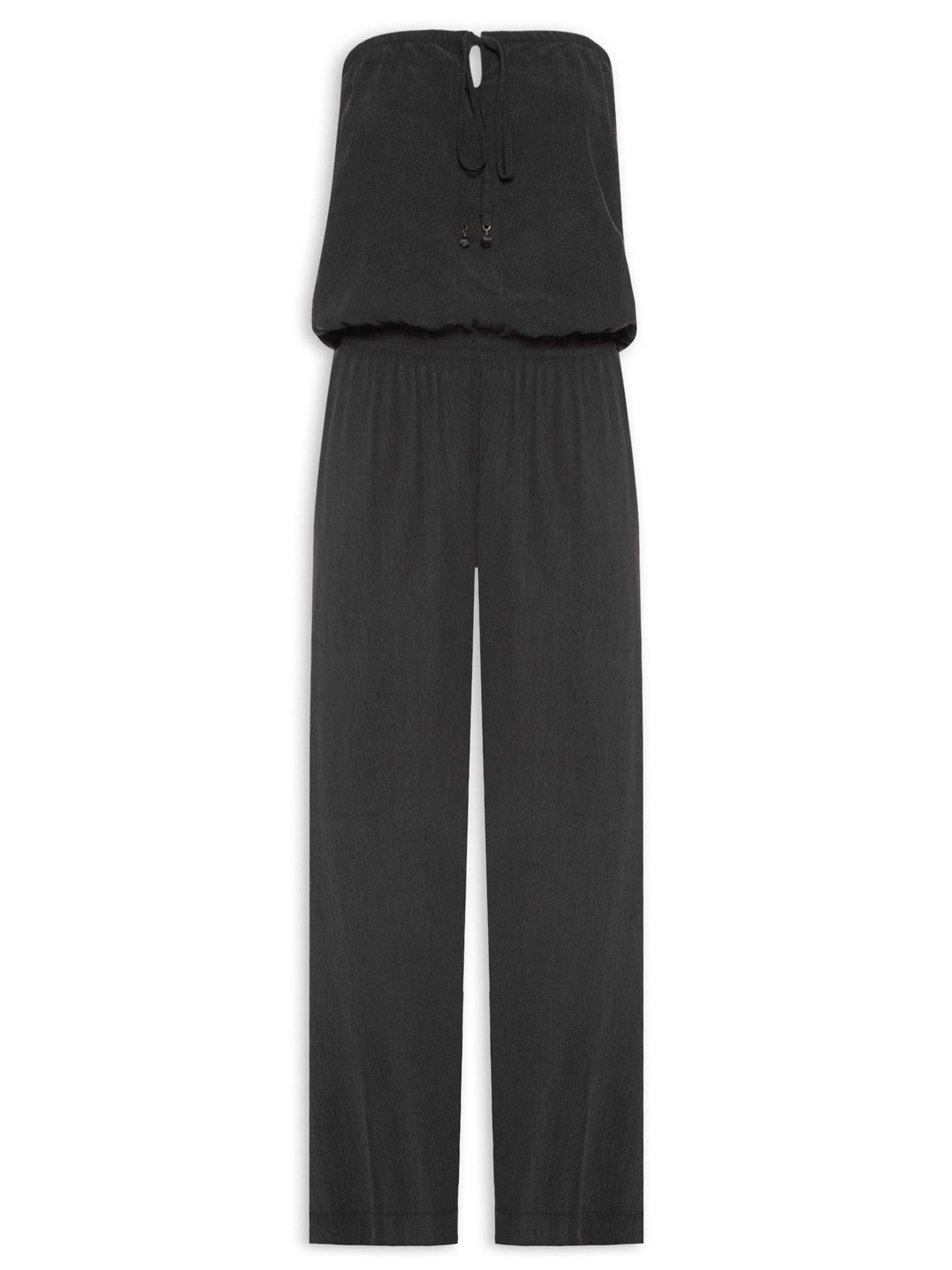 Macacão Feminino Faixa Médio Em Couro - Preto
