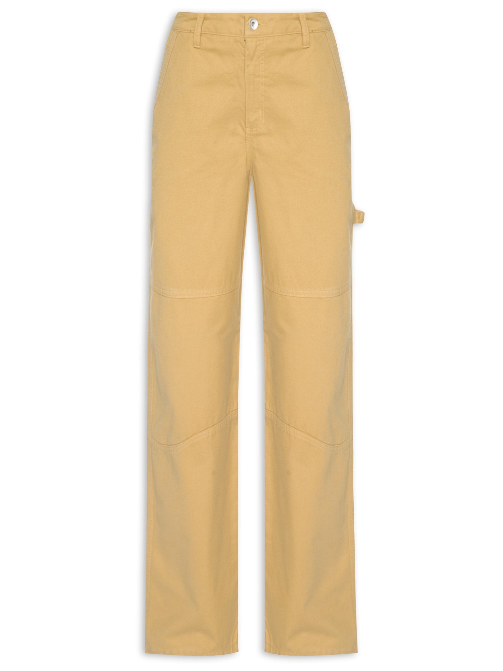 • Calça Feminina Sarja Boca Reta Bege Biscoito - Bege