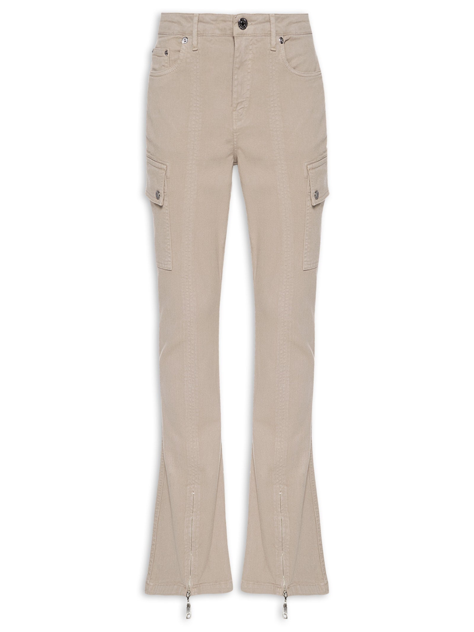 Calça Feminina Sarja Boot Basic High Fenda com Zíper - Preto