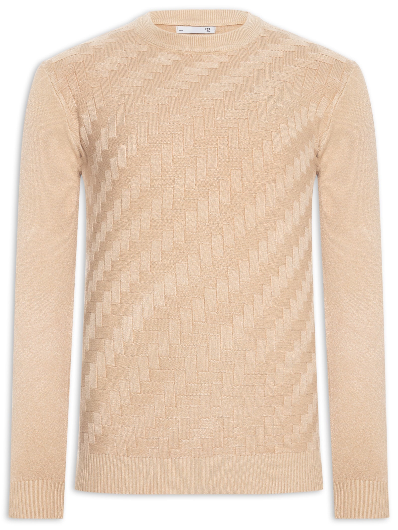 Suéter Masculino Gola Redonda Texturizada - Bege