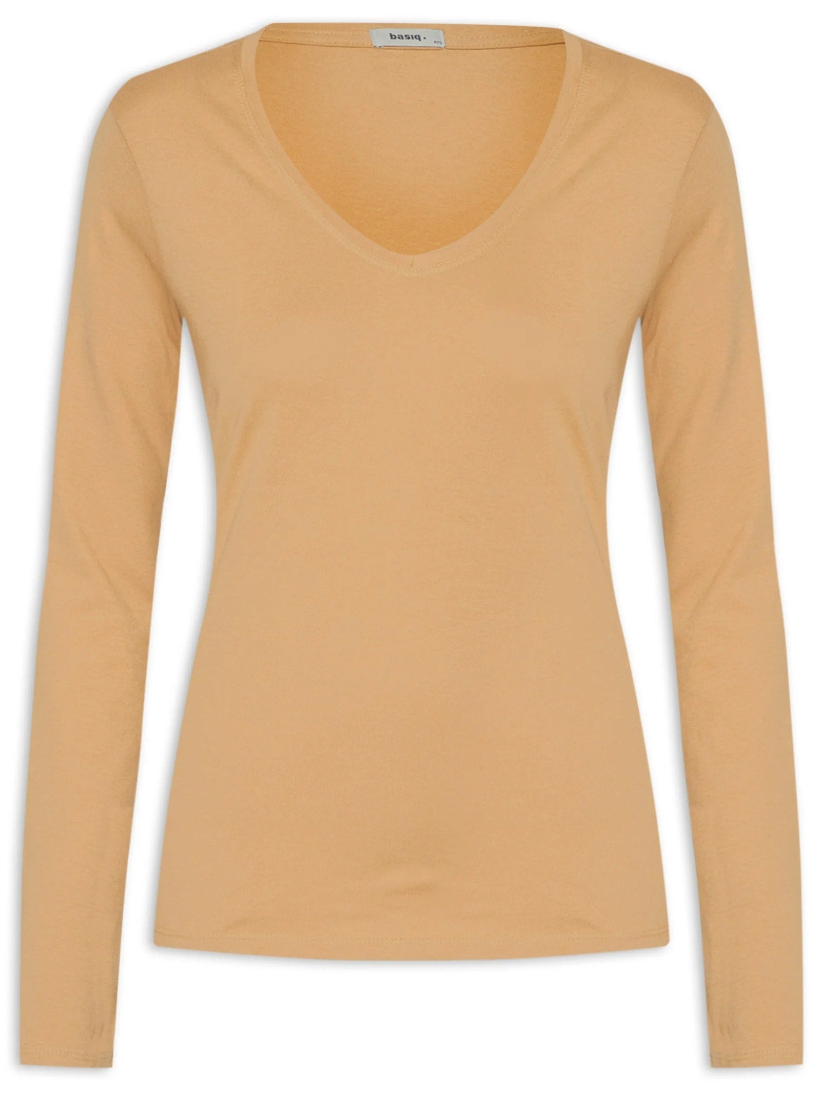 Blusa Feminina Básica Ampla Com Decote Em V - Bege