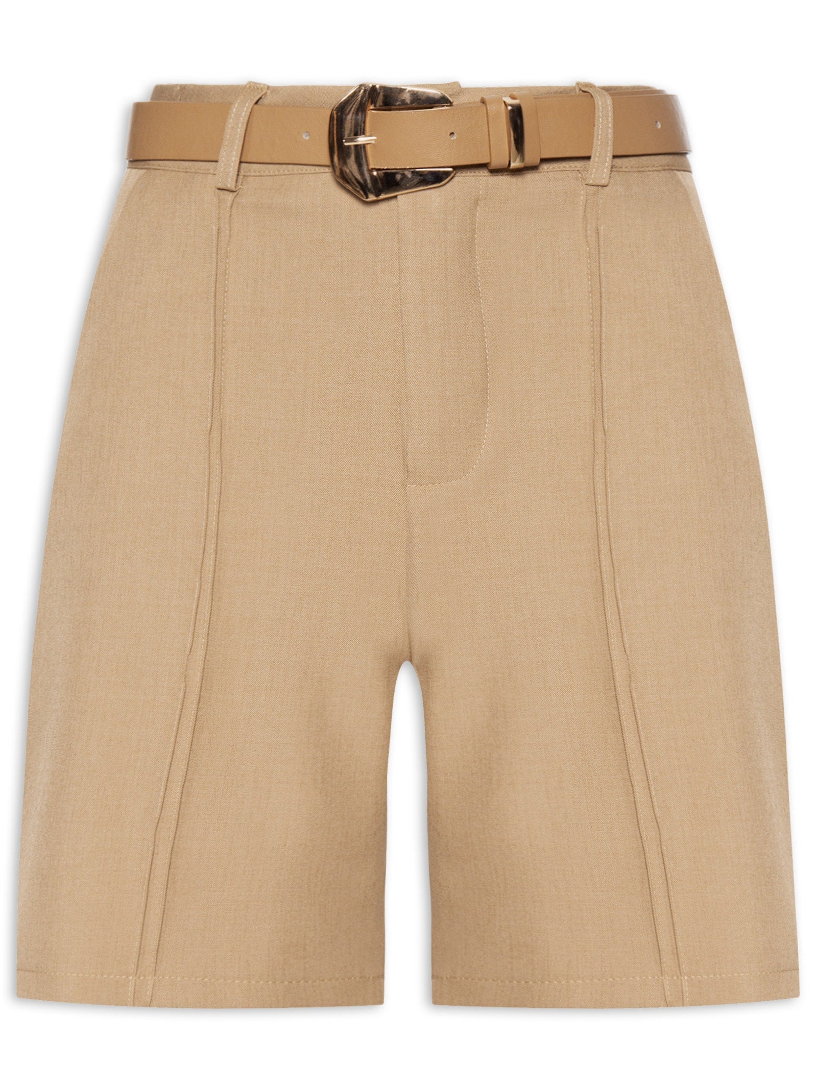 Bermuda Feminina Nervuras com Cinto - Cinza