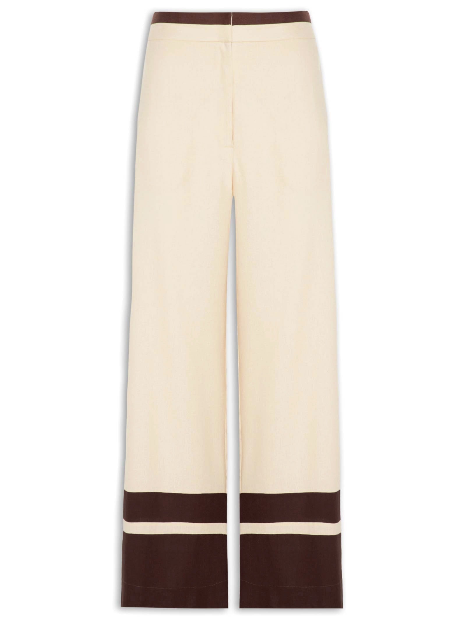 • Calça Feminina Alfaiataria Linho Bolso Frontal - Bege