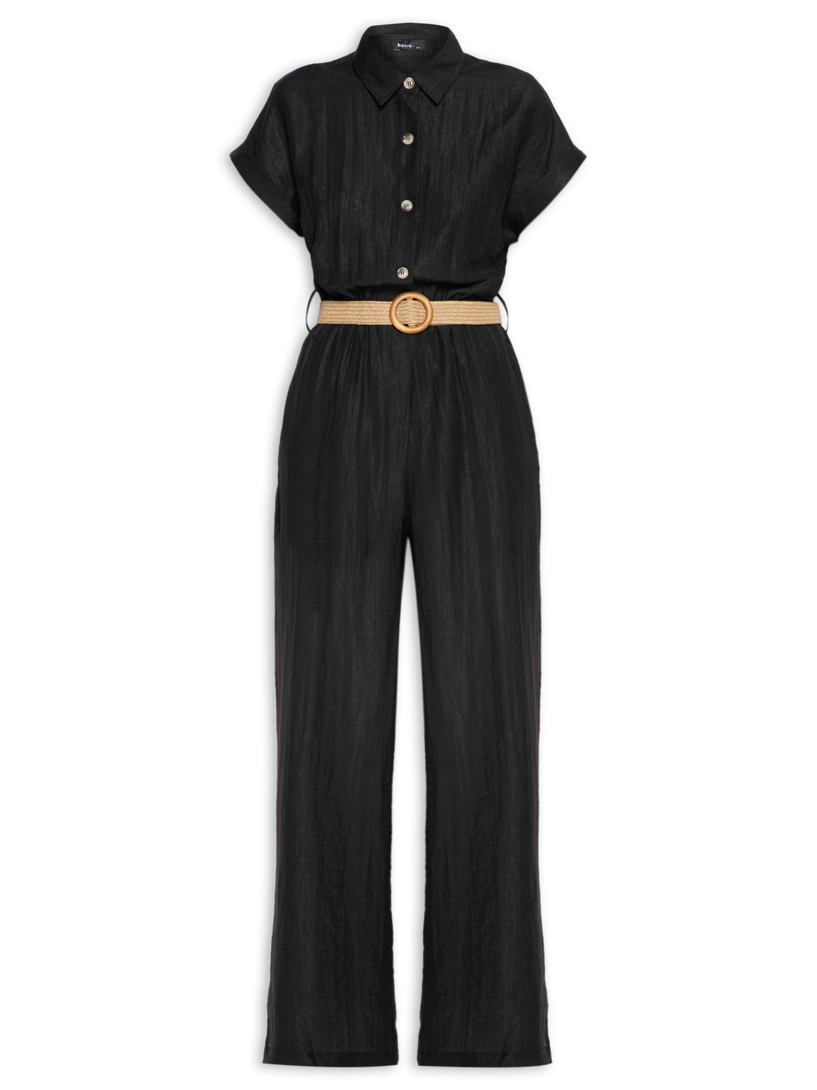 Macacão Feminino Com Cinto E Ombreiras - Preto