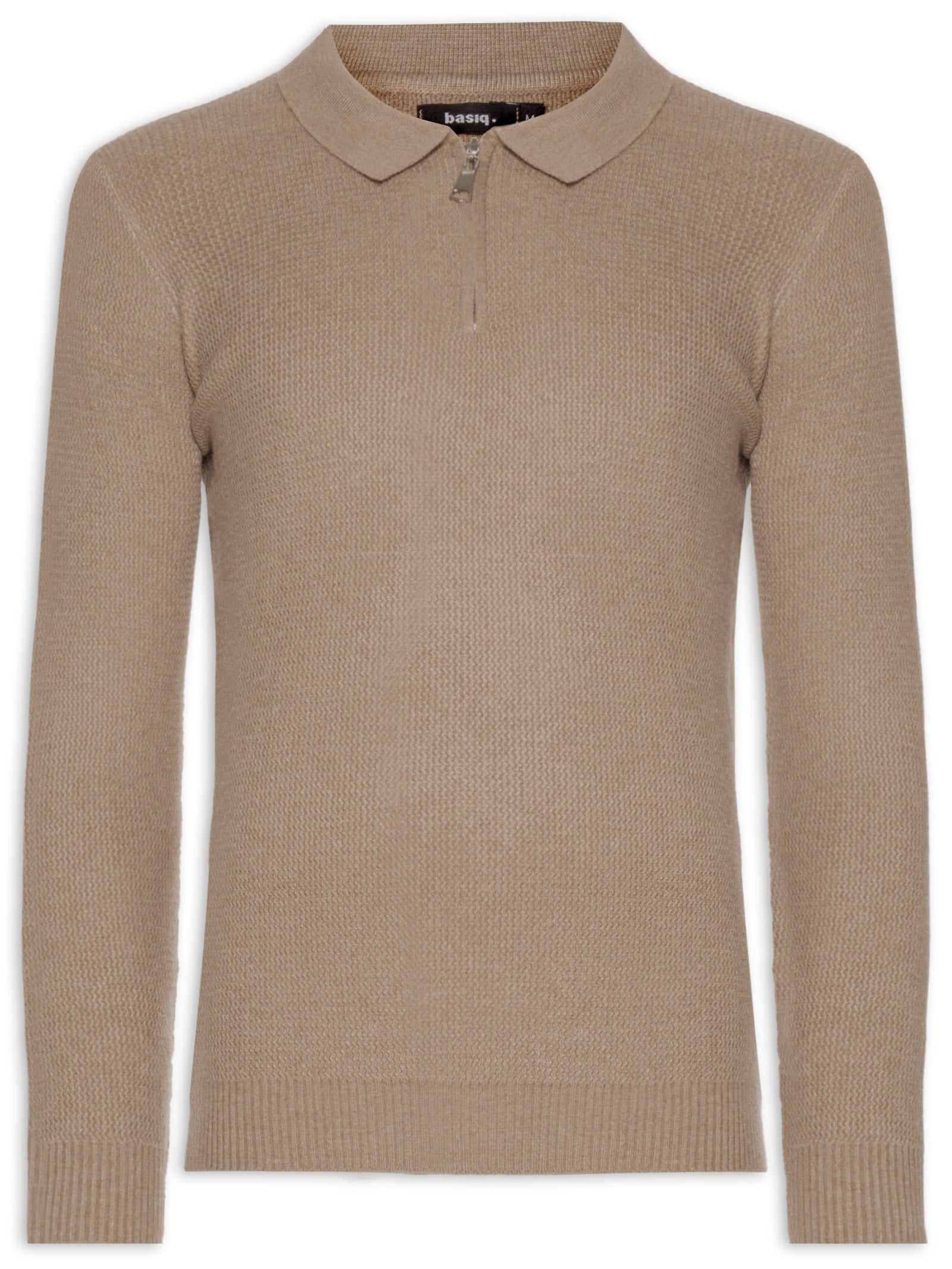 • Suéter Masculino Gola Arredondada em Modal - Bege
