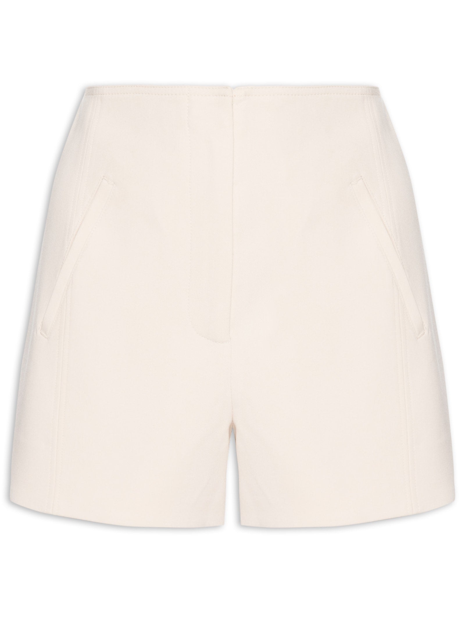 Short Feminino Cintura Alta Em Linho Misto Bordado - Bege